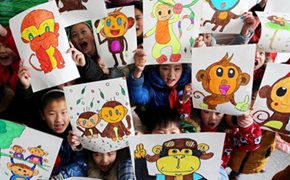 People view lanterns themed on monkeys to greet the upcoming Spring Festival in Macao, south China, on Jan. 29, 2016. The Spring Festival, or the Chinese Lunar New Year, will fall on February 8 thi...