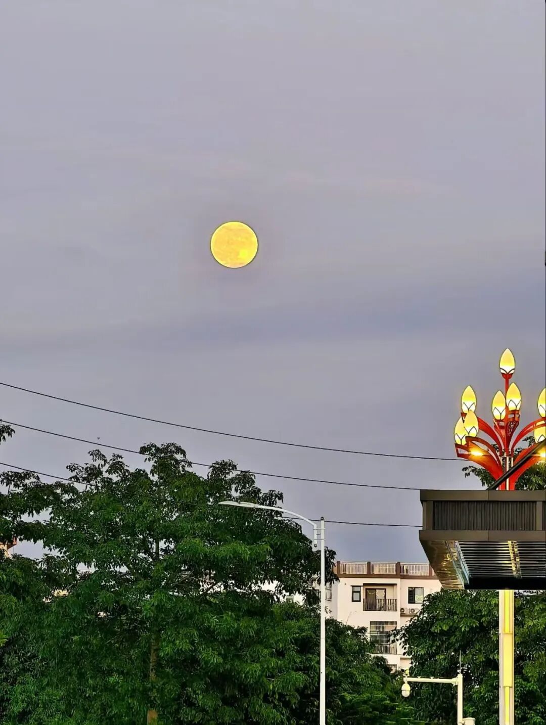 The so-called "supermoon" appeared above Dongguan tonight, bathing the city in soft silver light. Many residents stopped in their tracks to capture the breathtaking scene with their cameras.